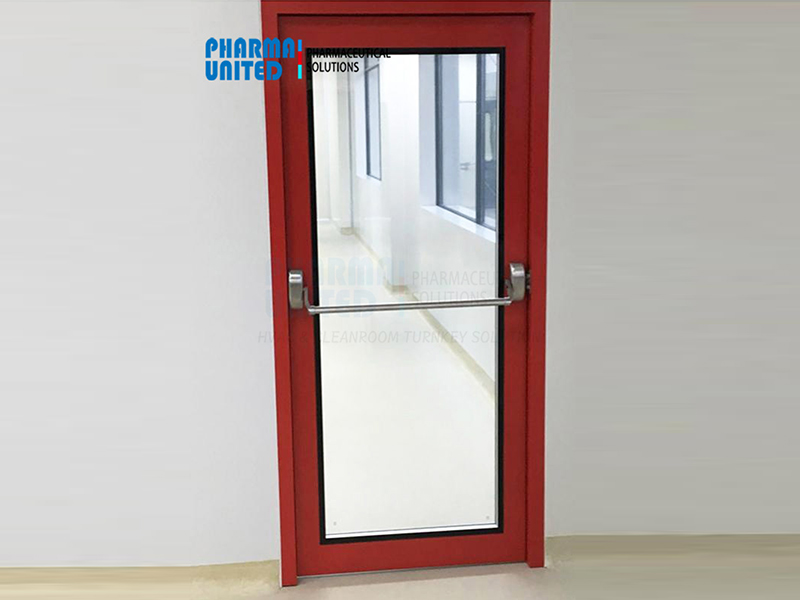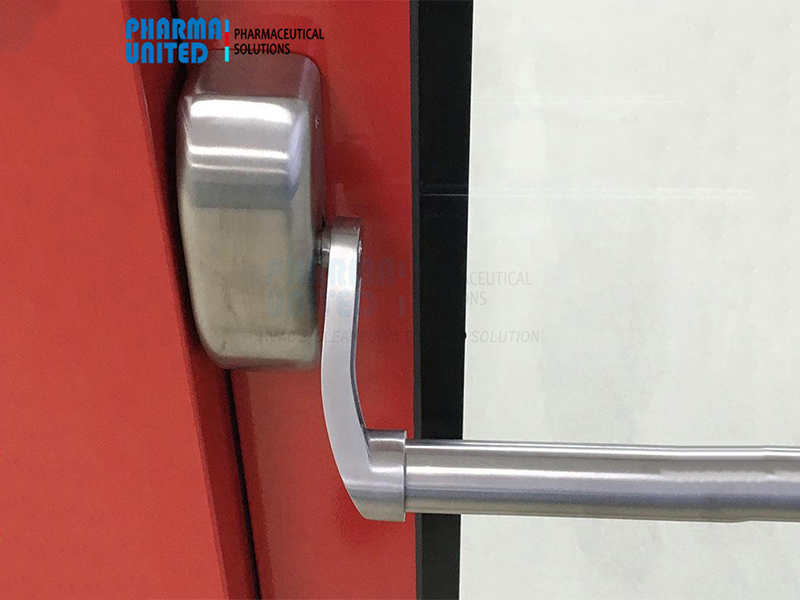 Pharma United designs and manufactures cleanroom emergency exit doors specifically for pharmaceutical GMP facilities.